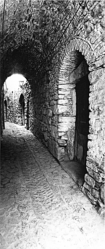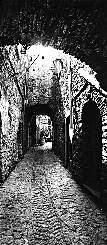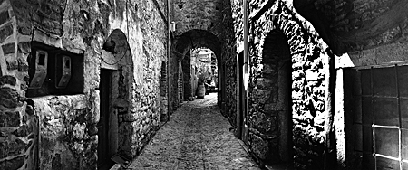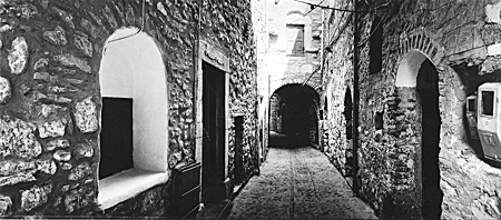 Οι λίγοι ξένοι γυρνάνε στα στενά δρομάκια. Εντυπωσιάζονται από την αρχιτεκτονική των σπιτιών, από την ευφυή δομή τους στο χώρο. Η πέτρα δεσπόζει παντού. Ένα εσωτερικό αμυντικό τείχος, ένα δαιδαλώδες οχυρό. Αλίμονο στον εισβολέα που θα χαθεί εδώ μέσα.